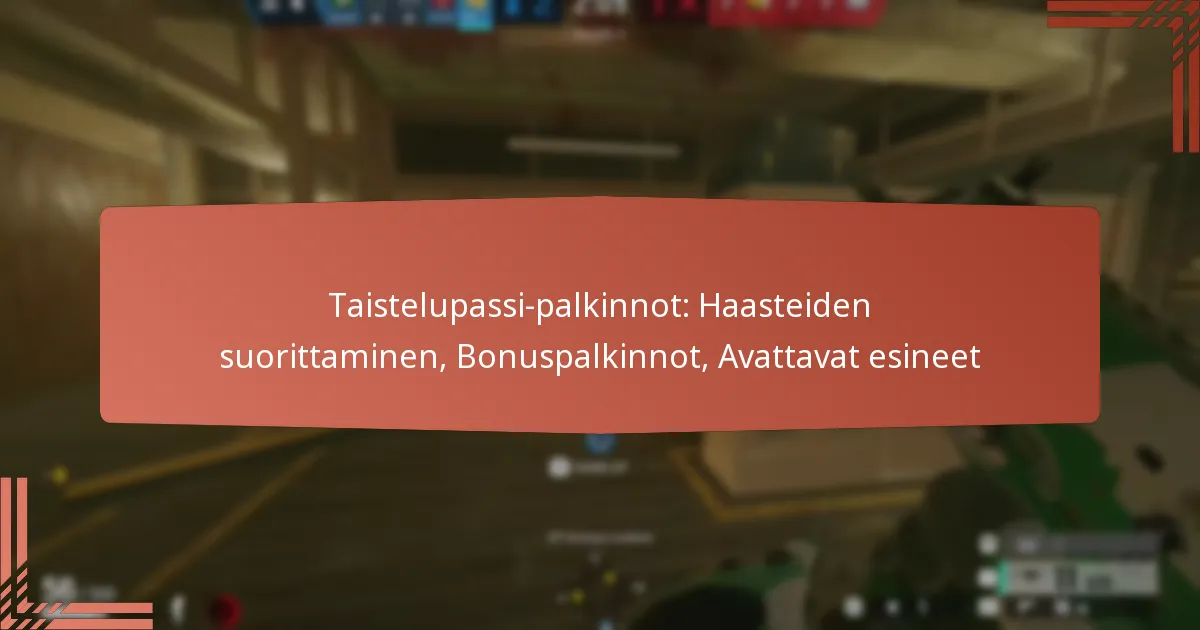 Battle Pass -palkinnot Tom Clancy’s Rainbow Six Siege -pelissä ovat järjestelmä, joka on suunniteltu parantamaan pelaajien sitoutumista tarjoamalla avattavia esineitä ja etuja haasteiden kautta. Pelaajat voivat ansaita näitä palkintoja suorittamalla tiettyjä tehtäviä kauden aikana, mikä edistää heidän kokonaiskehitystään pelissä.