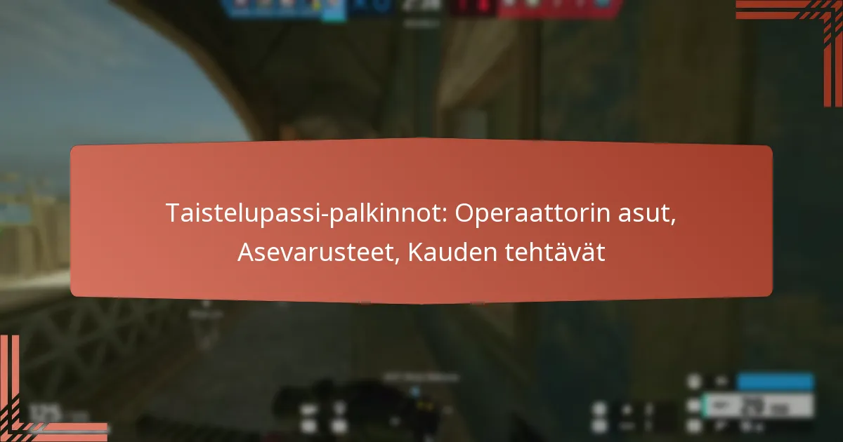 Tom Clancy’s Rainbow Six Siege -pelin Battle Pass -palkinnot tarjoavat pelaajille eksklusiivisia esineitä ja parannuksia, kun he etenevät kausittaisen Battle Passin läpi. Nämä palkinnot sisältävät ainutlaatuisia operaattorihahmojen ulkoasuja, jotka mahdollistavat henkilökohtaisen ilmaisun, asevarusteita, jotka parantavat suorituskykyä ja mukauttamista, sekä kausittaisia tehtäviä, jotka rikastuttavat pelielämystä.