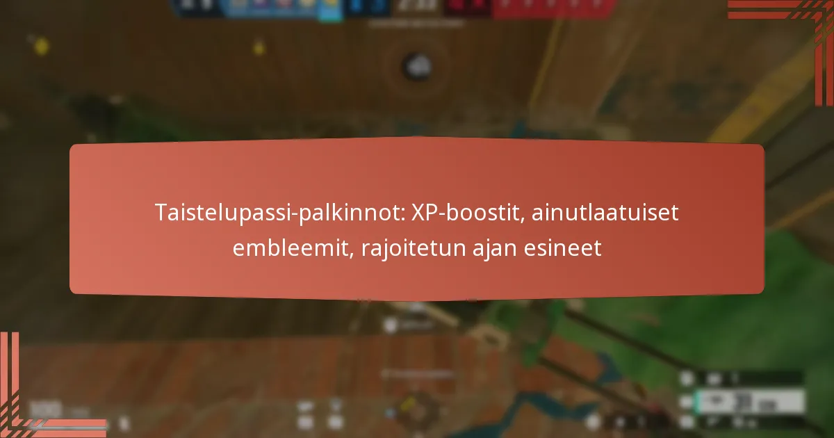 Pelaajat ansaitsevat Battle Pass -palkintoja Tom Clancy’s Rainbow Six Siege -pelissä suorittamalla haasteita, tehtäviä ja edistymällä kausisisällössä. Nämä palkinnot sisältävät XP-boostit, ainutlaatuiset embleemit ja rajoitetun ajan esineet, jotka parantavat pelitapahtumia ja mukautusta.