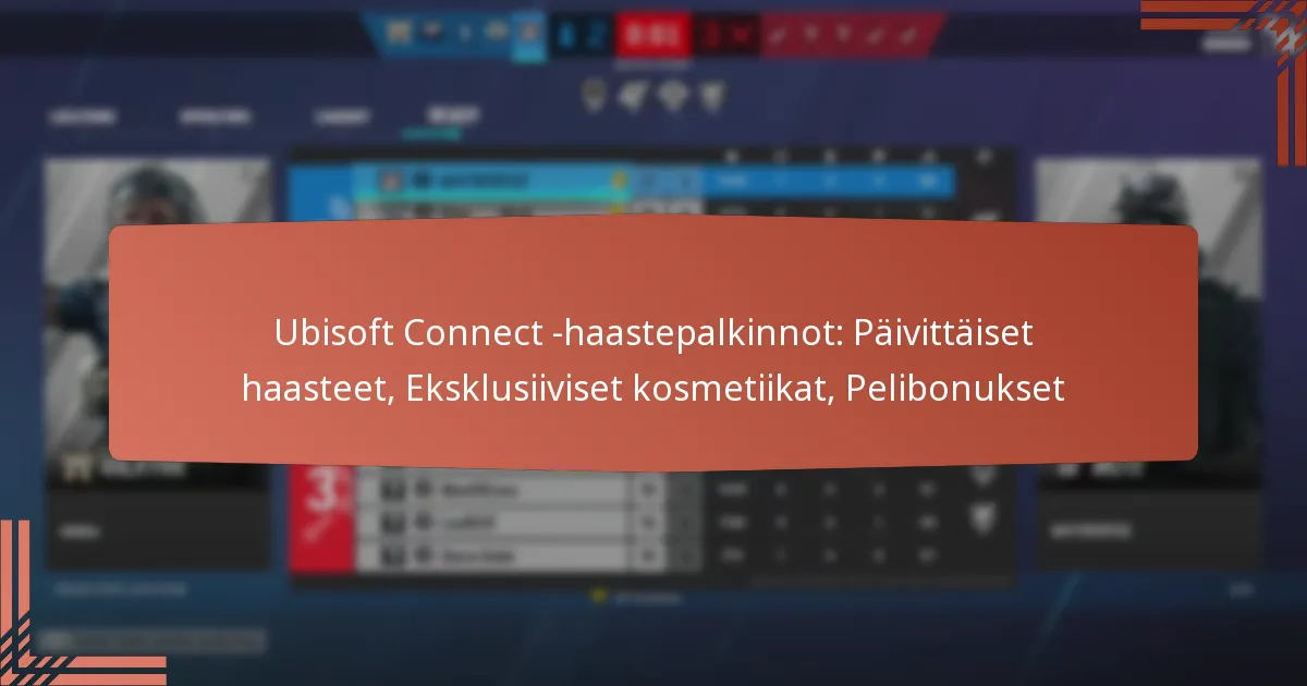 Ubisoft Connect -haastepalkinnot ovat kannustimia, joita tarjotaan pelaajille tiettyjen pelitehtävien ja haasteiden suorittamisesta. Nämä palkinnot voivat sisältää päivittäisiä haasteita, ainutlaatuisia kosmeettisia esineitä ja pelibonuksia, jotka parantavat kokonaisvaltaista pelikokemusta.